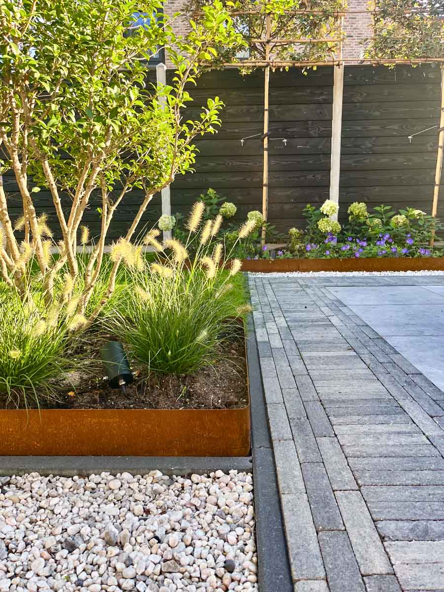 De afboording is gemaakt van stevig maar toch buigzaam metaal. Hierdoor kunt u zowel rechte randen als glooiende of gebogen vormen creëren in uw tuin!