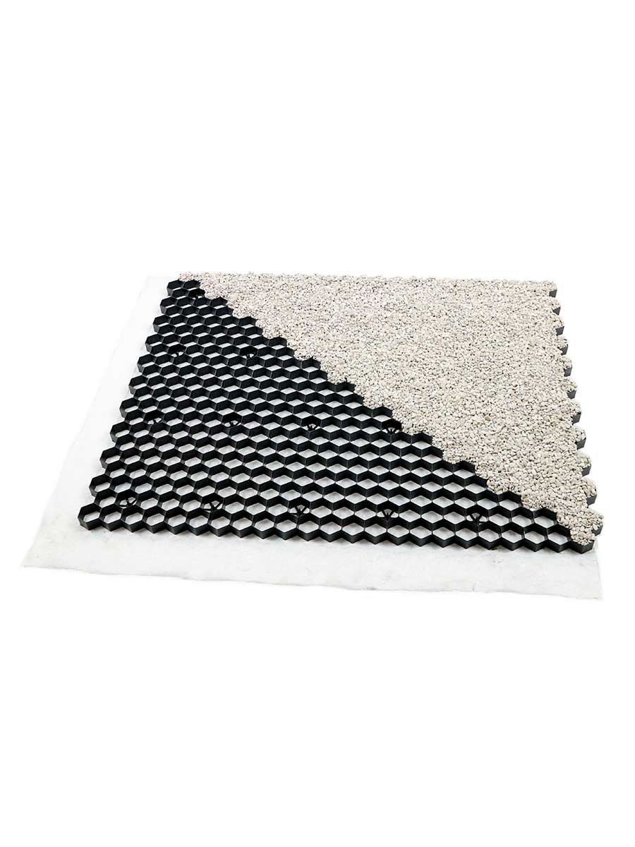 Profiteer van deze volle palletactie van de EuroGravel PLUS grindplaten / grindmatten, met geïntegreerd anti-worteldoek.